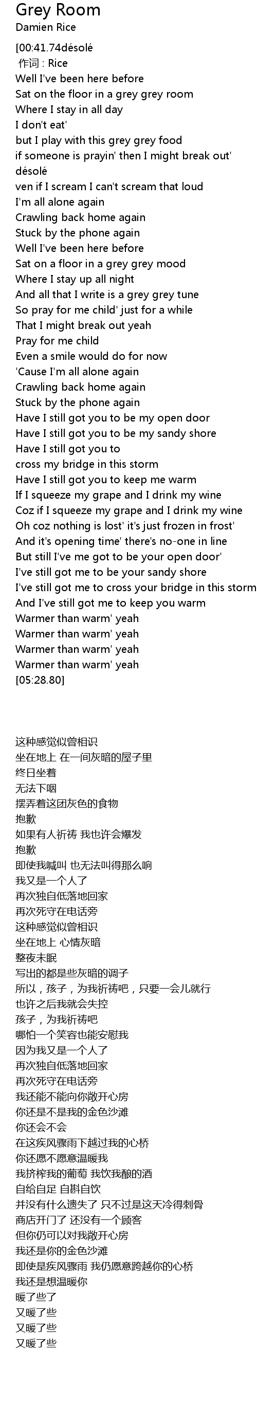 | [01:34.81] | Sat on a floor in a grey grey mood |