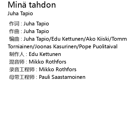 | [00:00.000] | 作词 : Juha Tapio |