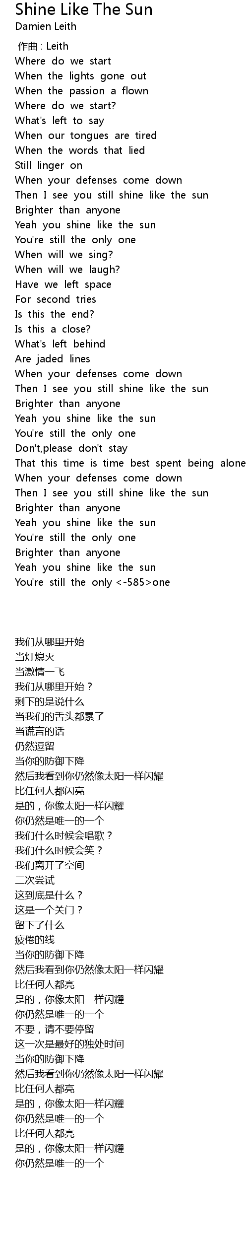 | [02:08.03] | Yeah you shine like the sun |