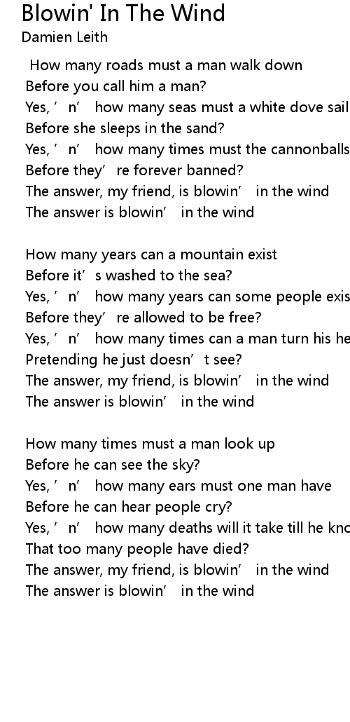 | Yes, ’n’ how many deaths will it take till he knows | |
