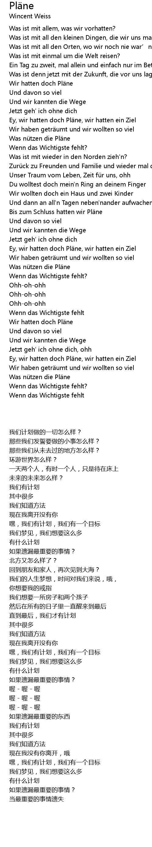 | [00:40.13] | Wir hatten doch Pl ne |