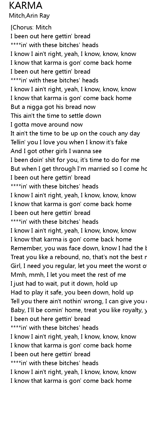 | [00:36.51] | I know that karma is gon' come back home |
