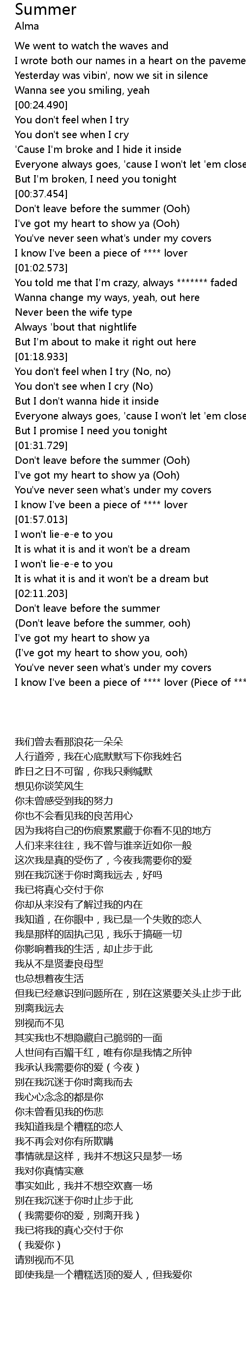 | [01:34.033] | Don't leave before the summer (Ooh) |