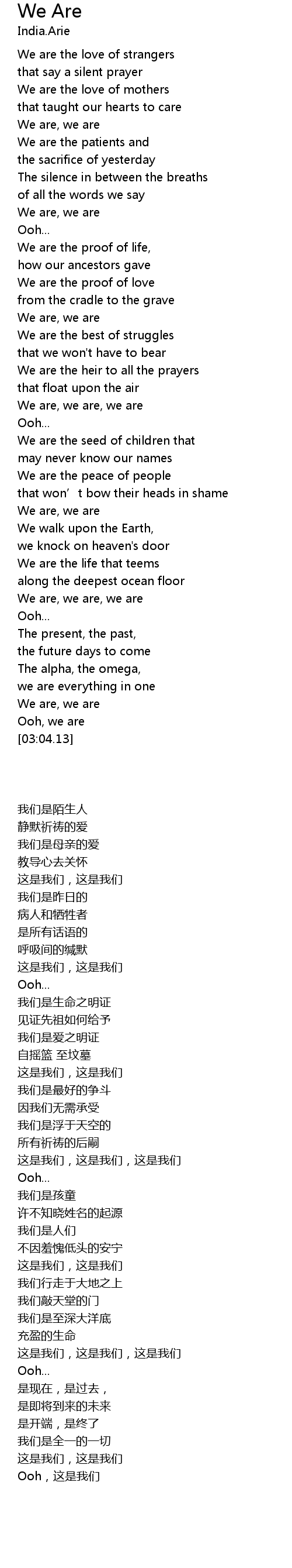 | [01:53.30] | We are the peace of people |