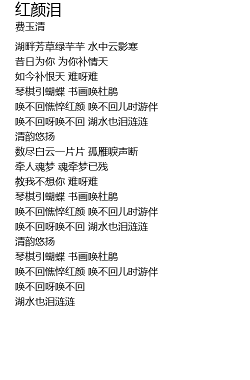 | [02:19.01] | 唤不回呀唤不回 湖水也泪涟涟 |
