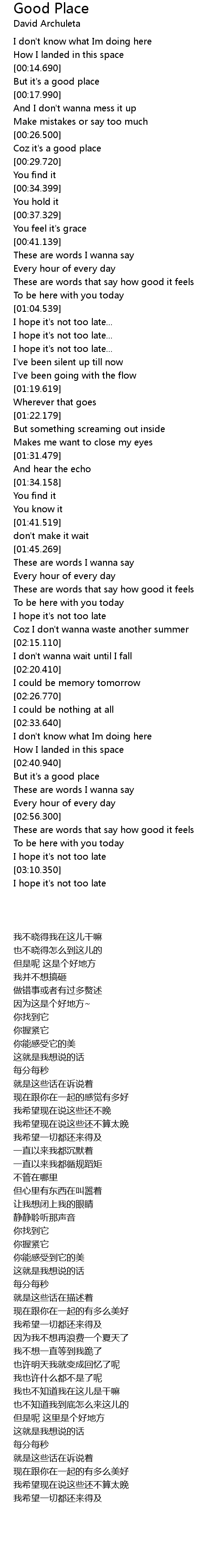| [00:15.990] | But it' s a good place |