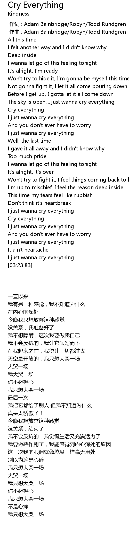 | [00:00.000] | zuò cí : Adam Bainbridge Robyn Todd Rundgren |