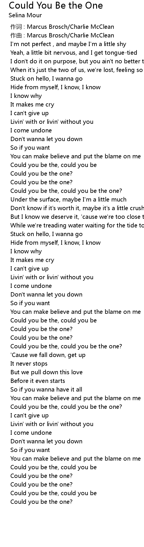 | [00:52.245] | Could you be the, could you be |
