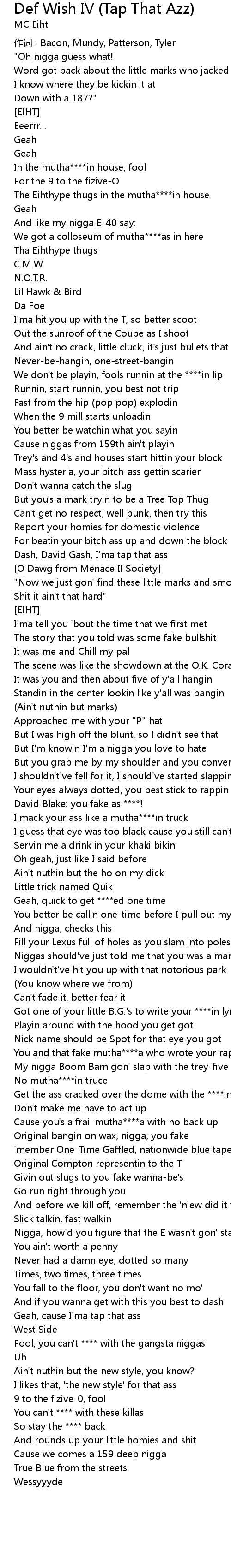 | Got one of your little B.G.'s to write your ****in lyrics | |
