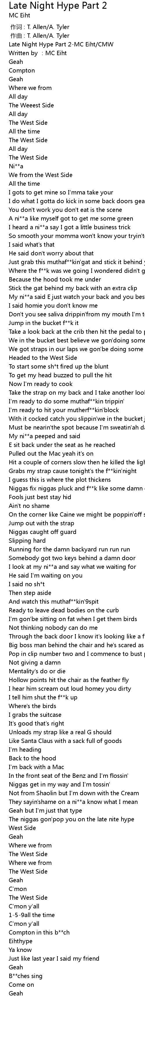 | [03:01.595] | The niggas gon'pop you on the late nite hype |