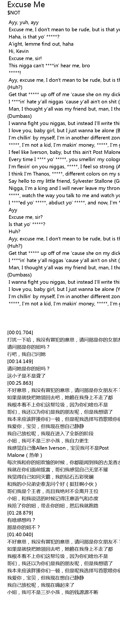 | [00:44.682] | I wanna fight you niggas, but instead I'll write this song (Ayy) |