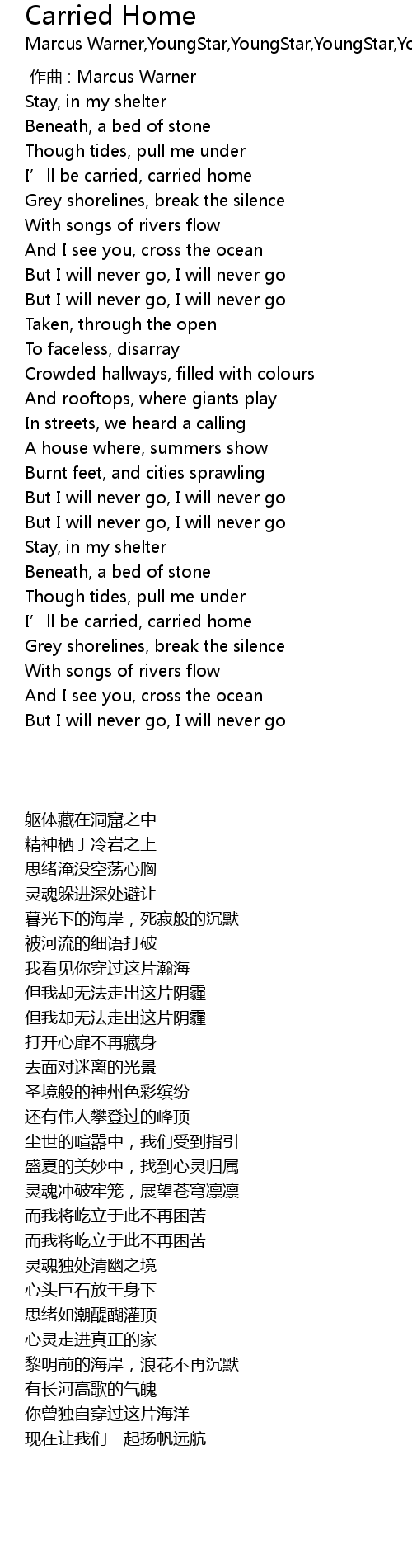 | Song | Carried Home |