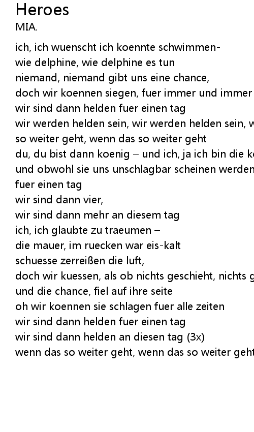 | wir sind dann helden an diesen tag (3x) | |