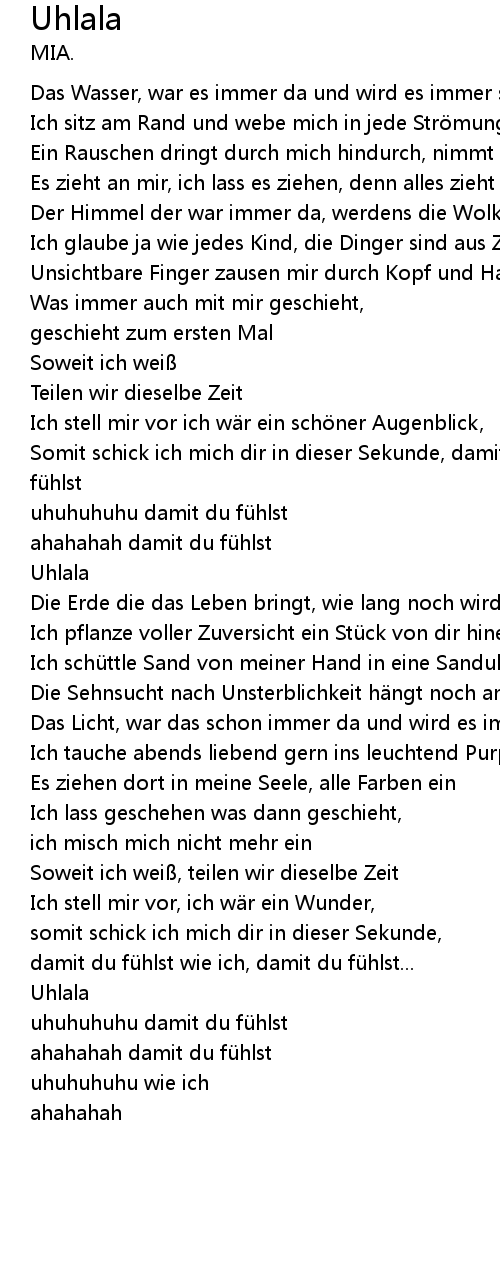 | Somit schick ich mich dir in dieser Sekunde, damit du fü hlst wie ich, damit du fü hlst | |