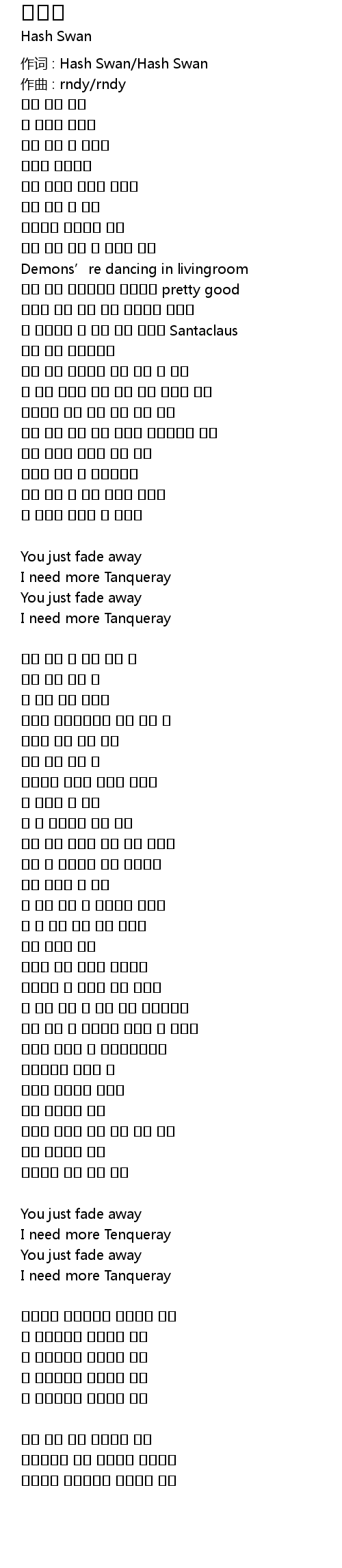 作词 : Hash Swan/Hash Swan |