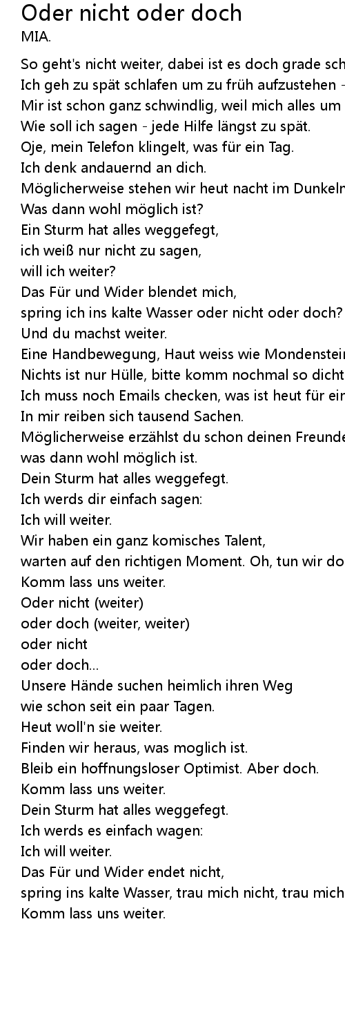 | Nichts ist nur Hülle, bitte komm nochmal so dicht. | |