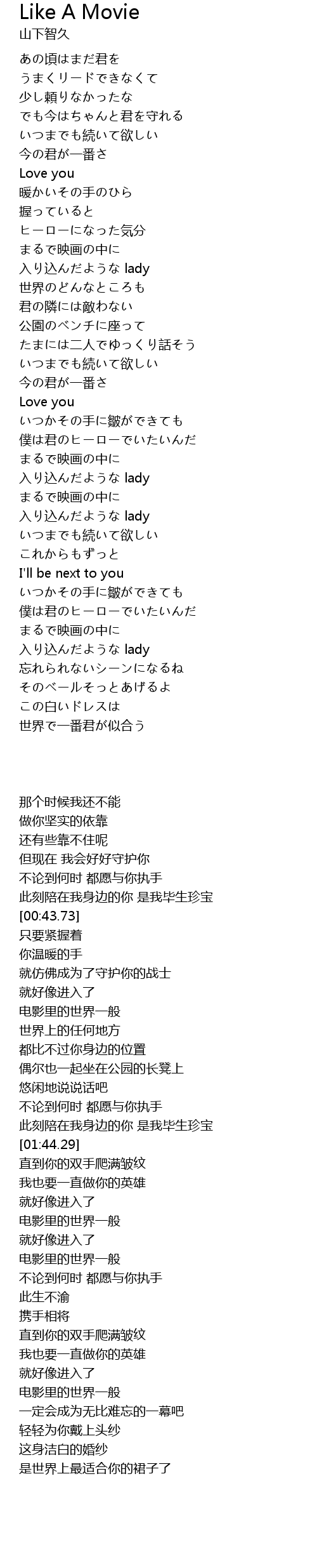 | [00:43.73] | Love you |