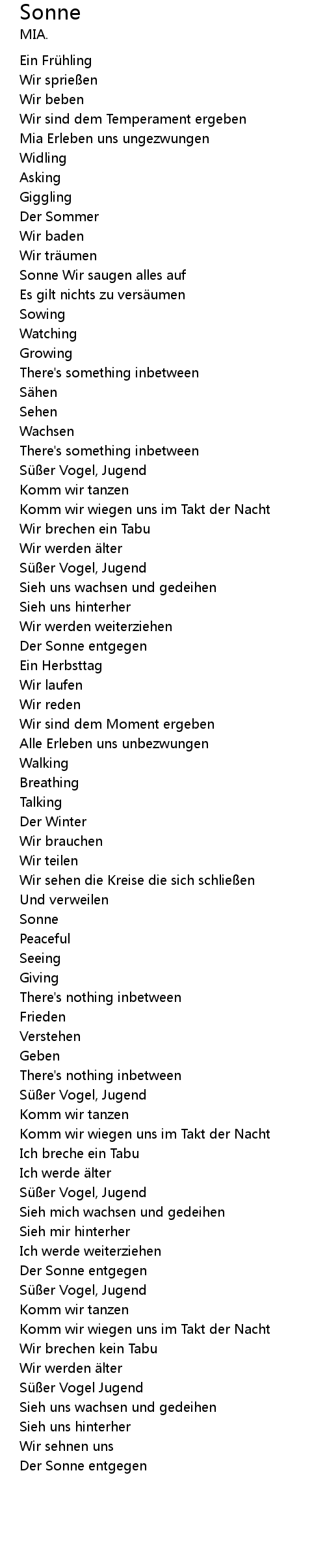| Song | Sonne |