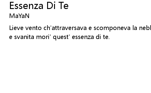 Lieve vento ch'attraversava e scomponeva la nebbia trafitta da un reggio di luce e svanita mori' quest' essenza di te.