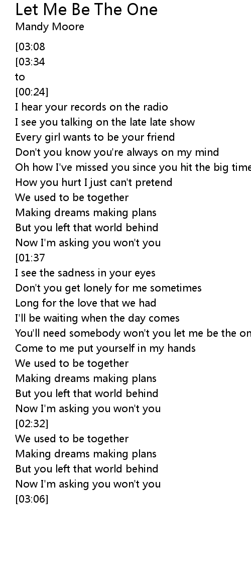 You'll need somebody won't you let me be the one |