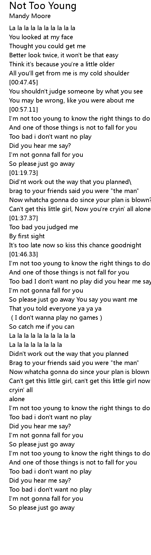 | Song | Not Too Young |