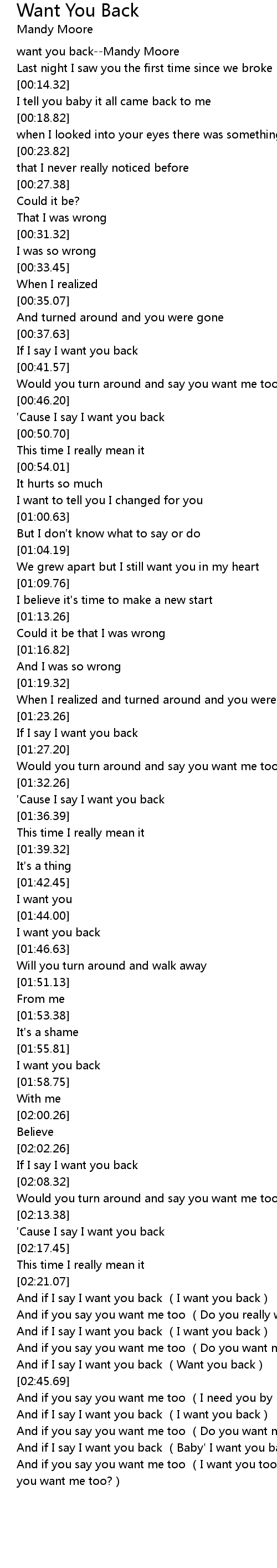 | [00:01.64] | want you backMandy Moore |