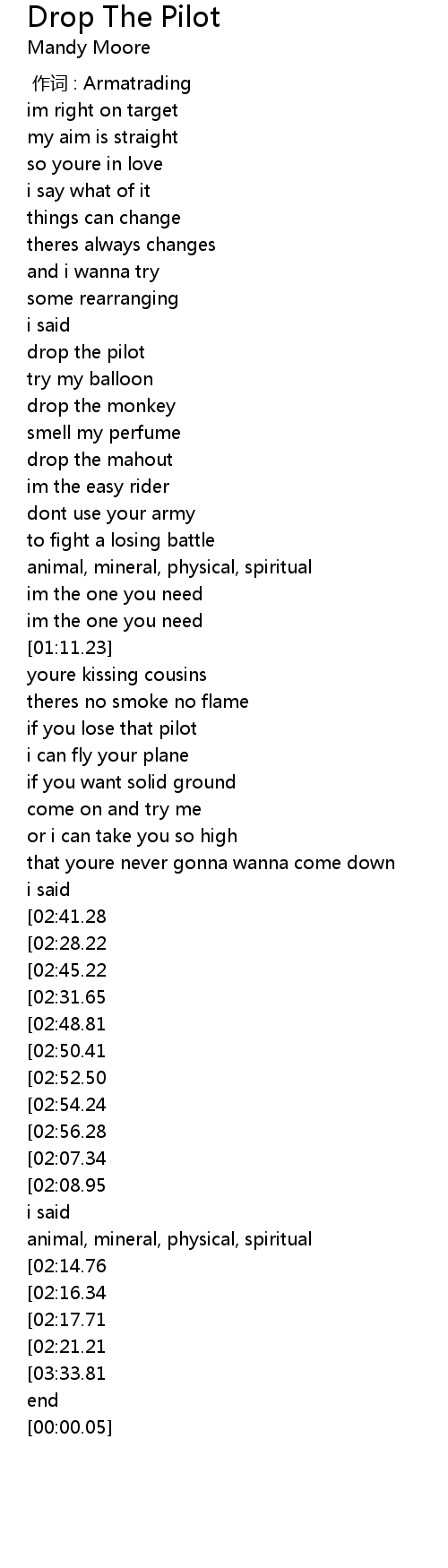 | [03:04.27][02:41.28][02:26.41][01:49.01] | drop the pilot |