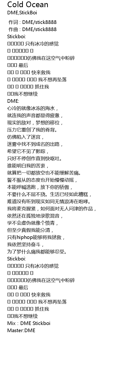 | [00:00.000] | 作词 : DME/stick8888 |