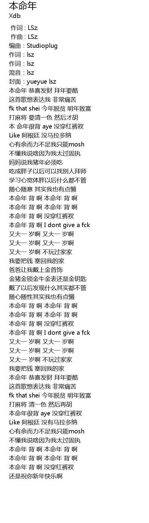 | [01:54.20] | 本命年 背 啊 I dont give a fck |