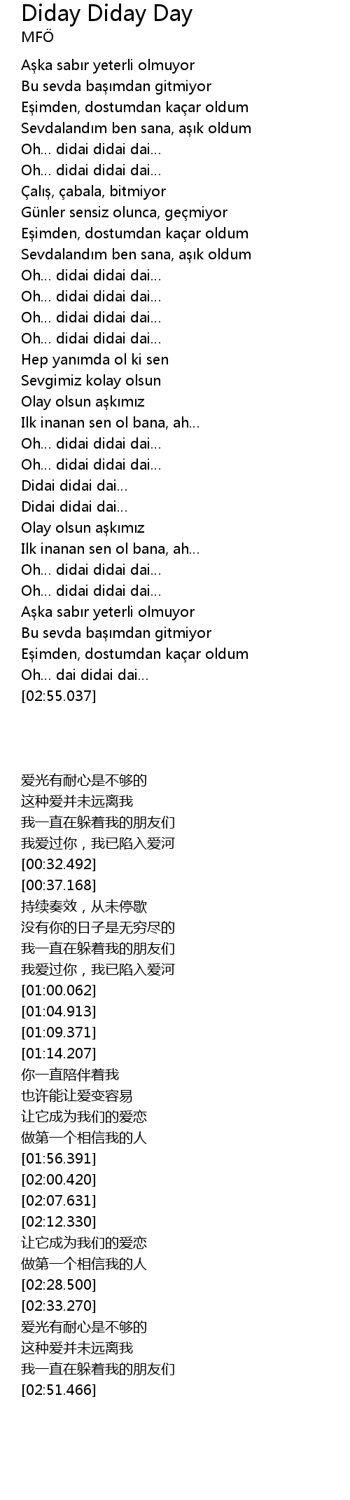 | [01:32.888] | Olay olsun a k m z |