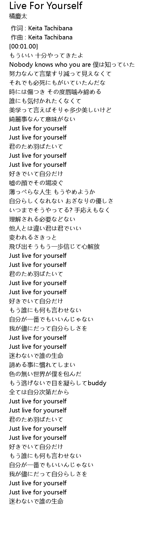 | [00:58.17] | Just live for yourself |