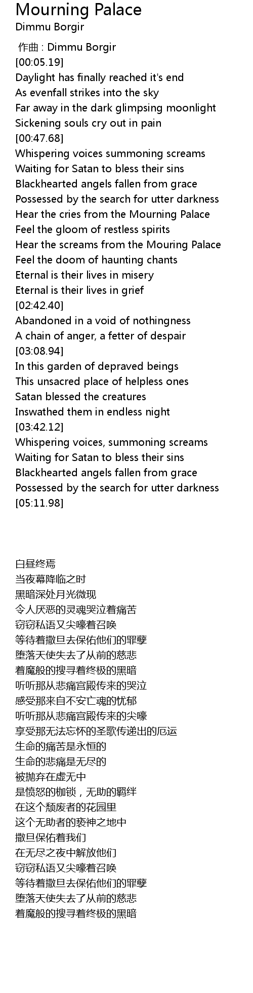 | [01:58.51] | Hear the cries from the Mourning Palace |