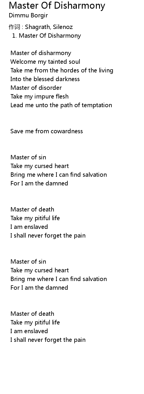 | Song | Master Of Disharmony |