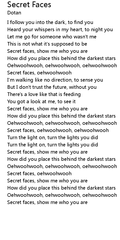 Secret faces, oehwoohwooh, oehwoohwooh |