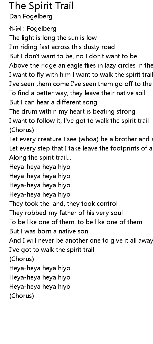 | I want to fly with him I want to walk the spirit trail | |