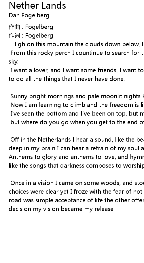 | 作词 : Fogelberg | |