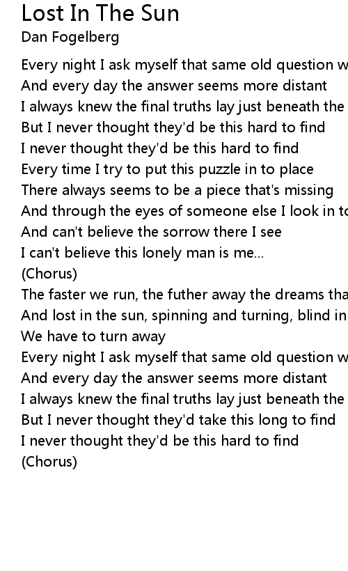 And lost in the sun, spinning and turning, blind in the burning light of day |