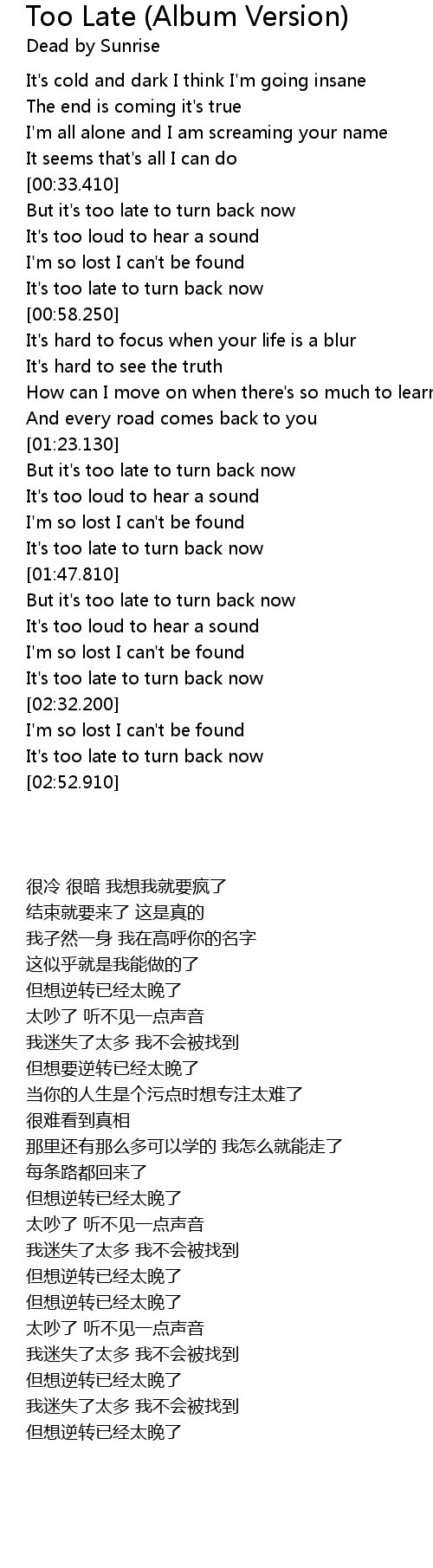 | [00:11.699] | It' s cold and dark I think I' m going insane |