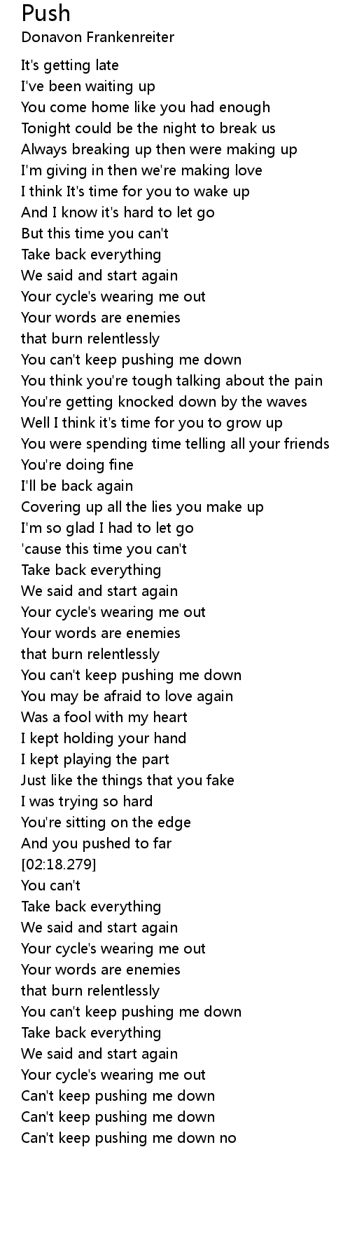 Can't keep pushing me down |