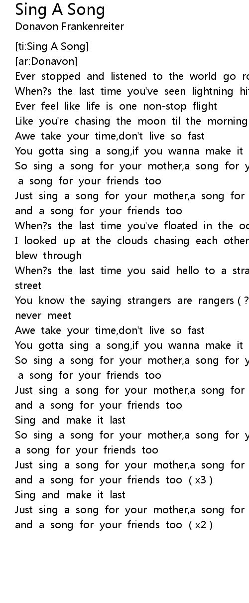 | [02:50.365] | Just sing a song for your mother, a song for your brother and a song for your friends too x3 |
