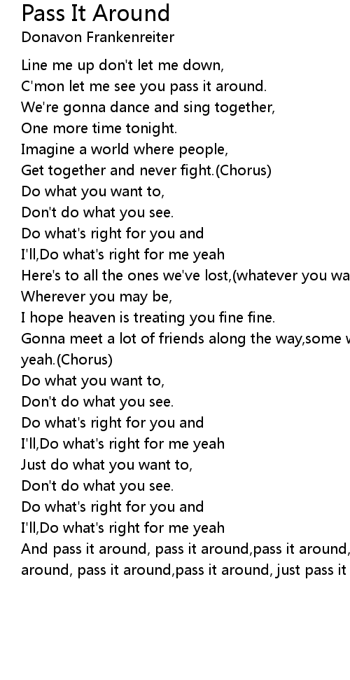 And pass it around, pass it around,pass it around, pass it around,pass it around, pass it around,pass it around, just pass it around |