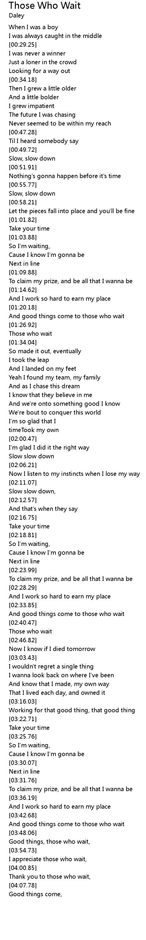 Good things, those who wait, |