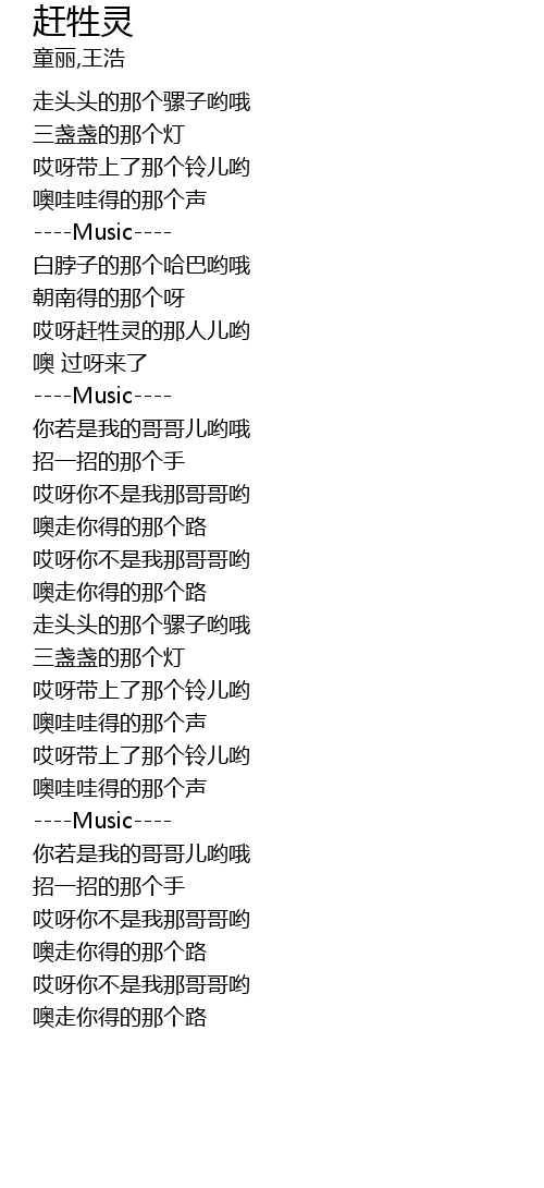 | [00:41.35] | 哎呀带上了那个铃儿哟 |