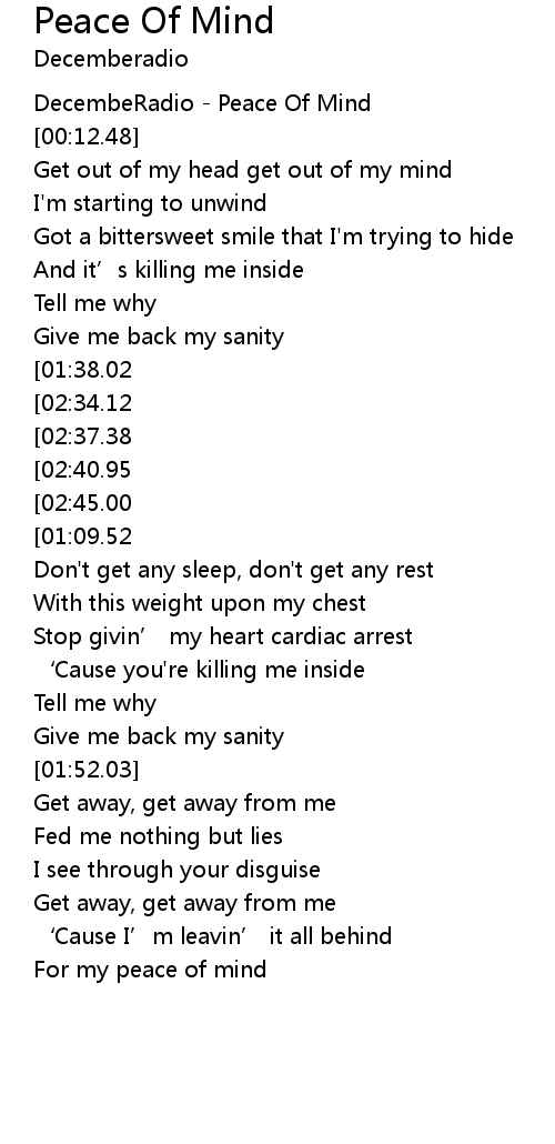 | [00:01.32] | DecembeRadio Peace Of Mind |