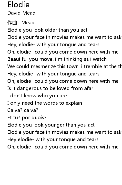 | Hey, elodie- with your tongue and tears | |