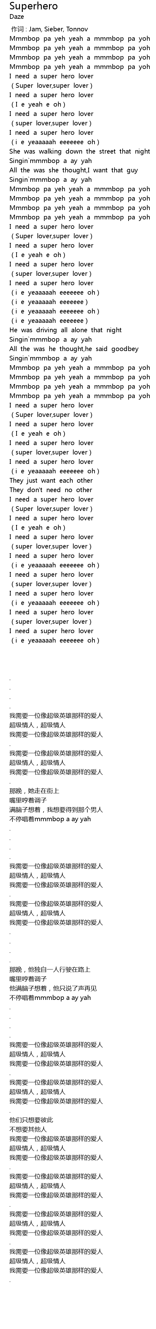| [02:56.42] | I need a super hero lover |