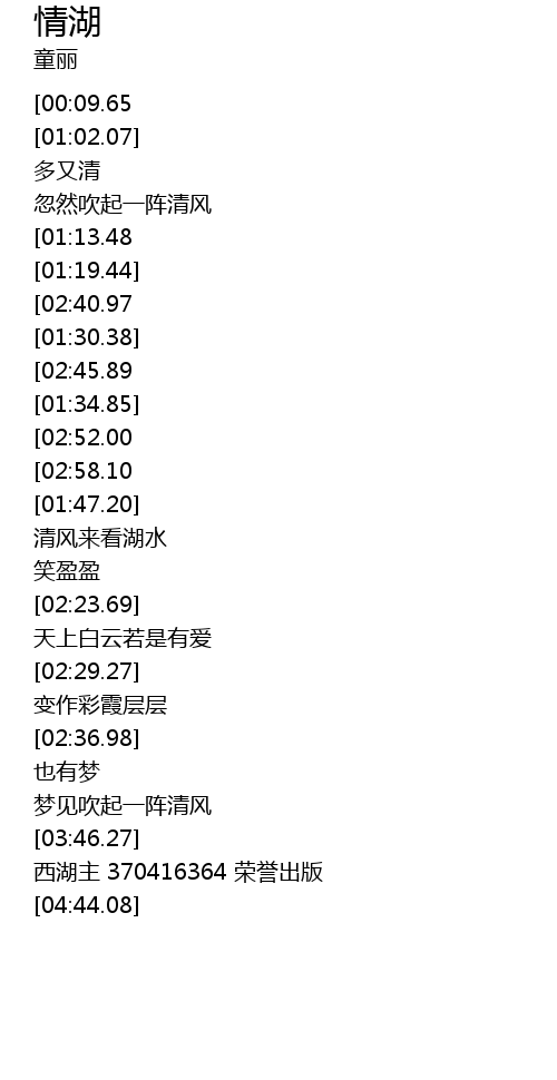 | [04:17.84] | 西湖主 370416364 荣誉出版 |