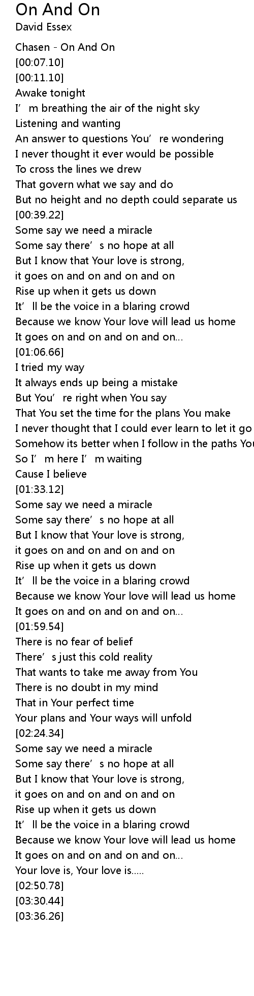 | [01:54.78] | It goes on and on and on and on |