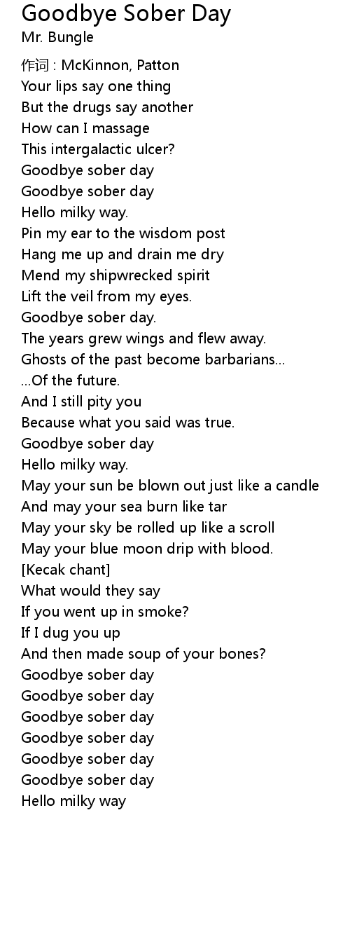 | Goodbye sober day | |