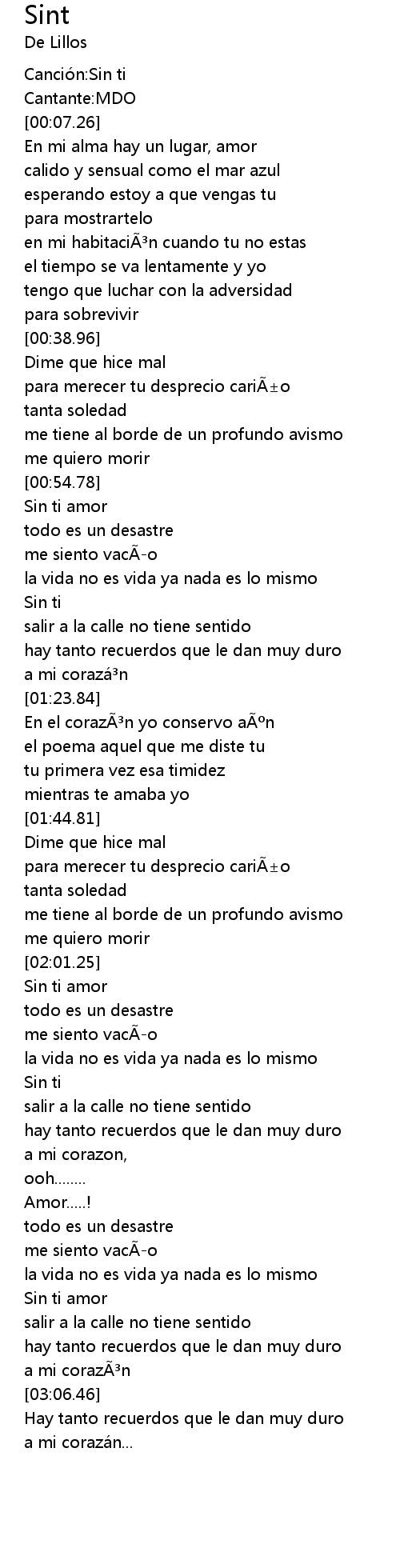 | [00:26.42] | en mi habitaci n cuando tu no estas |